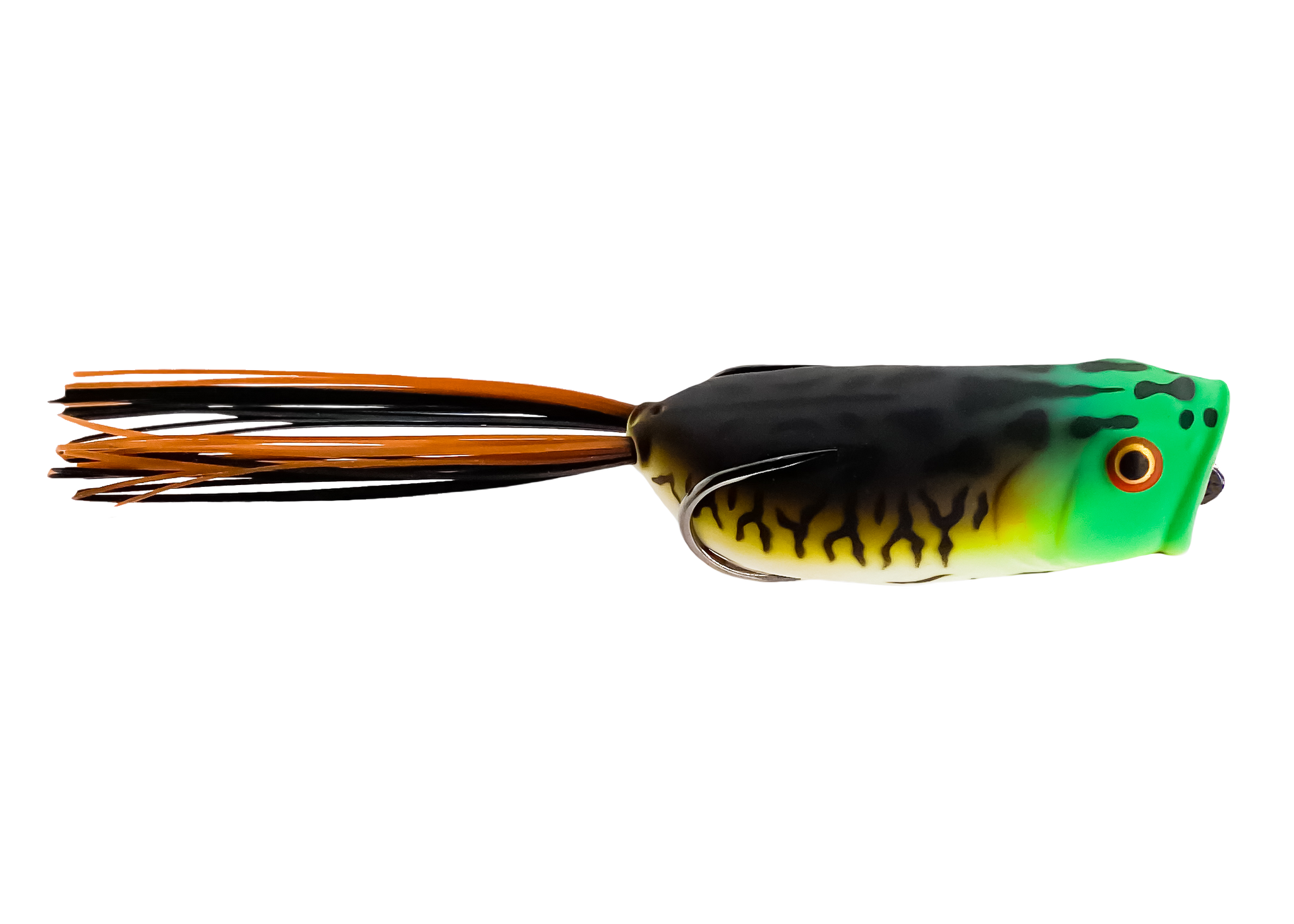 Built to succeed where others fail. The Thumper’s super-soft body and zero line-contour design collapse instantly on the bite for a higher hookup ratio. A specially angled nose and flat belly help it climb over pads, wood, and “cheese” without rolling, while streamlined legs boost walk-the-dog action and stay clear of the hooks to reduce fouling.