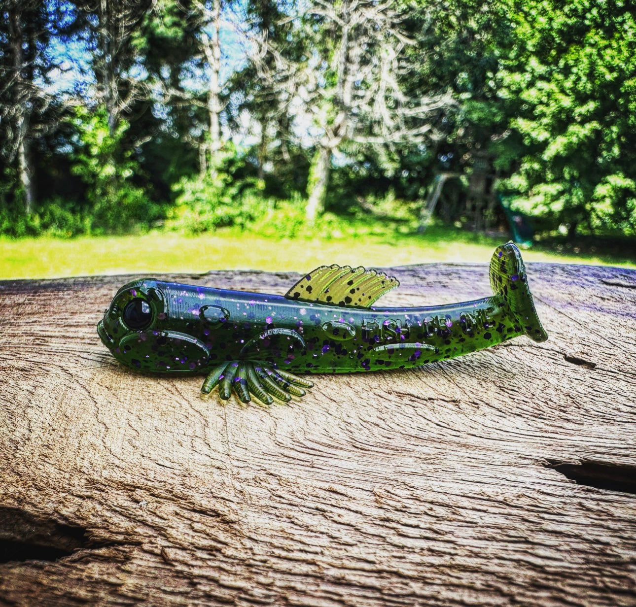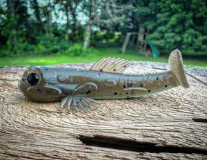 A-Jack is a 3" goby profile perfected for northern smallmouth. A naturally bulbous head tapers to a flattened belly so the bait sticks to bottom and glides like the real thing, while an inverted rear spine and tail deliver a tight thump on slow drags or short hops. From a kayak, it’s deadly on rock piles, shoals, and current seams where gobies live.