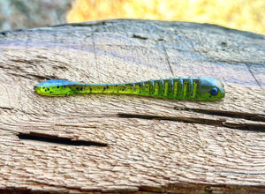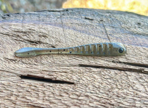 The Gadsden is the first custom bait designed by Founder Taylor Magditch—a finesse baitfish profile built to excel on a drop shot and just as deadly on Ned, Neko, and Damiki rigs. A ribbed spine frees up side-to-side movement, a cupped tail adds micro-flutter, and 3D eyes finish the illusion. From a kayak or boat, it’s the stealth play when bass are studying every detail.