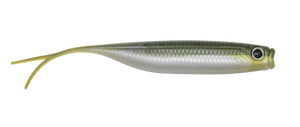 Nose-hook it on a 1/8–1/4 oz hover jig or ball head so it hangs horizontal and rocks side-to-side on small rod shakes.