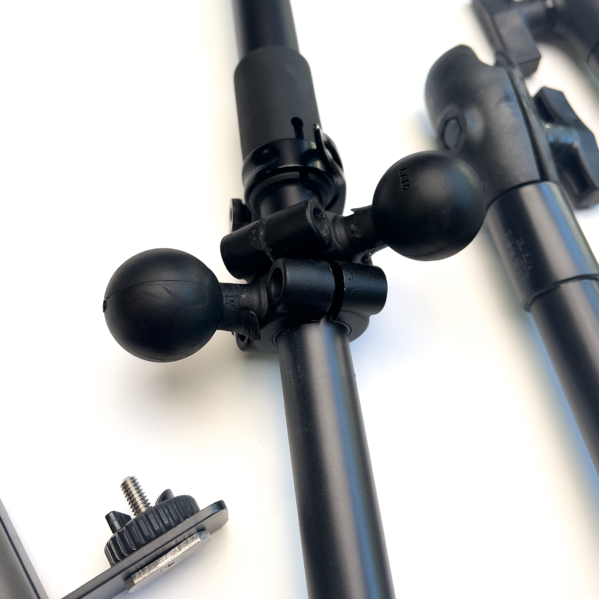 ✅ Secure gear track mounting with DU-BRO Twister knobs and RAM Mounts for rock-solid hold on Titan X rails