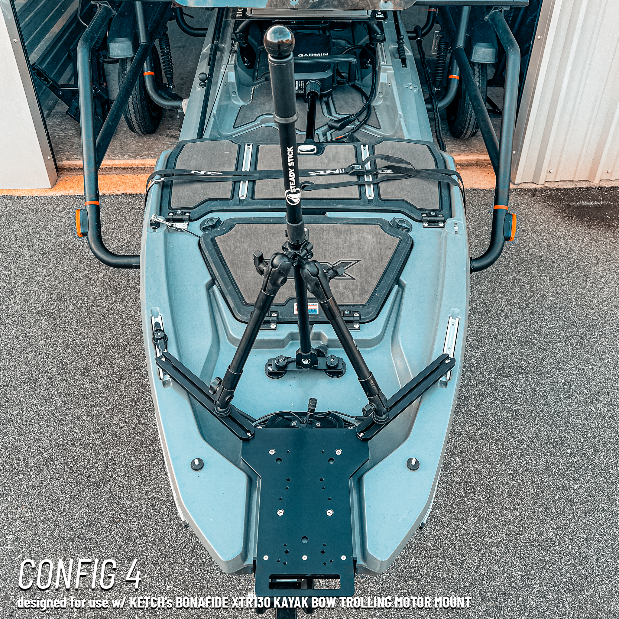 The Steady Stick for the Bonafide XTR 130 gives kayak anglers a reliable, adjustable balance point for standing or riding in real-world conditions. Multiple configurations integrate with the stock bow or popular bow motor mounts, so you can keep your deck clean while gaining rock-solid stability at the front of the kayak.