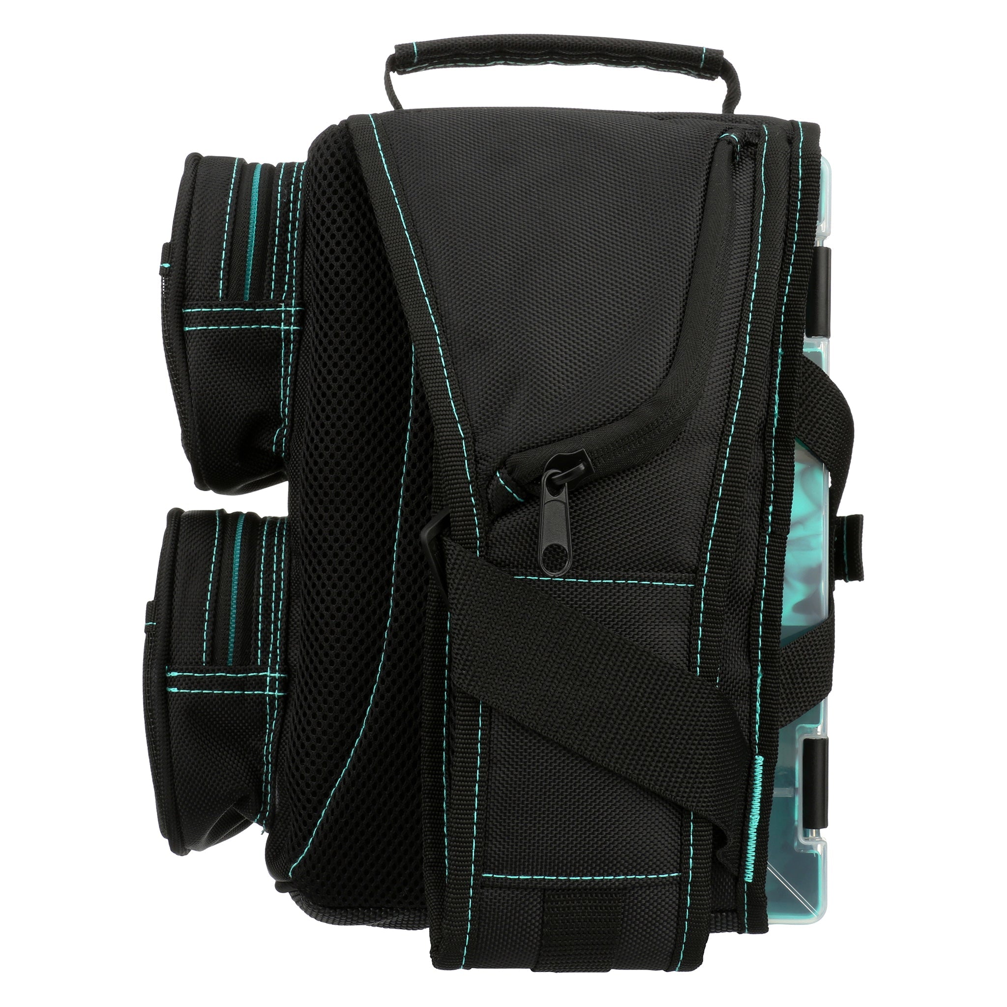 Durable seafoam tackle sling with 3 trays and rain fly