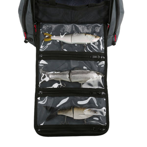 With both pop-out pockets collapsed, you can fit up to six 3600-size trays horizontally or vertically. Pop out one pocket to make space for three more trays, or use the compartments to store plastics, spools of line, scents, or even a water bottle. Three snagless PVC interior pockets keep your gear dry and your valuables safe. On the exterior, a side slip pocket holds two rod combos, while additional storage pockets and a plier holder keep essentials within easy reach.
