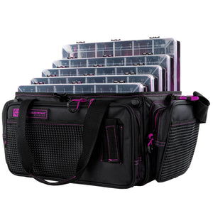 "Topless" means the tackle bag has a large open-top design for fast, easy access to trays — no zippers or flaps to slow you down.