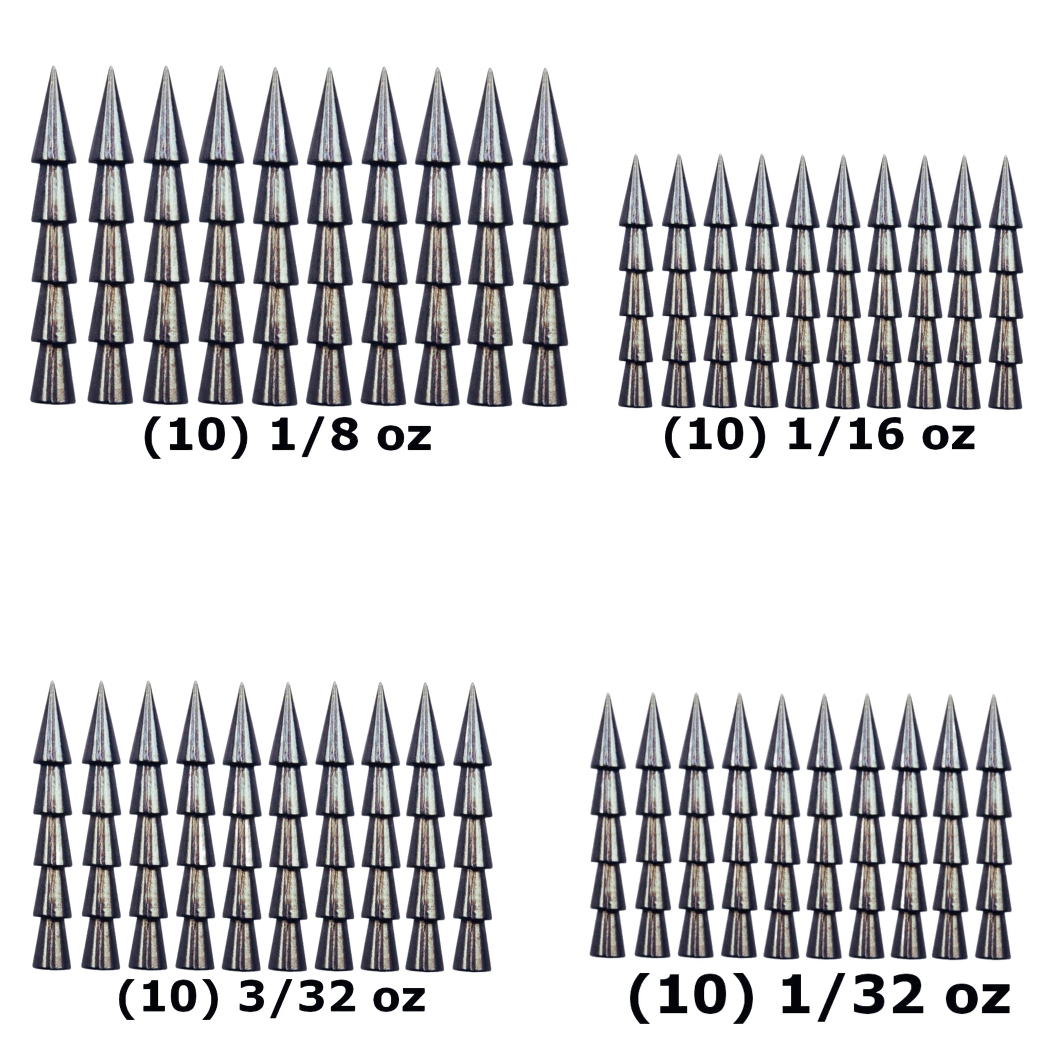 | 40-Piece Variety Pack | 10 of each size: 1/32 oz, 1/16 oz, 3/32 oz, 1/8 oz |