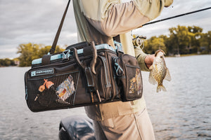 The integrated Y-Strap keeps trays locked in place, while a built-in rain fly provides protection when weather turns rough. With 3 large exterior pockets, 4 mesh slip pockets, and added organization for line spools and pliers, you’ll have all your essentials ready at a moment’s notice. Its non-slip PVC bottom with drainage grommets prevents water buildup, making it ideal for boats, banks, or kayaks.