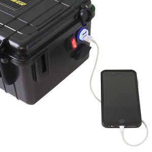 The compact and waterproof design can hold up to three 7AH batteries or two 12AH batteries while still being small enough to stow away in many hatches. The integrated external, dual USB charging port ensures that both your mobile device and outdoor action camera have all the power they need to capture all the action while you’re on the water.